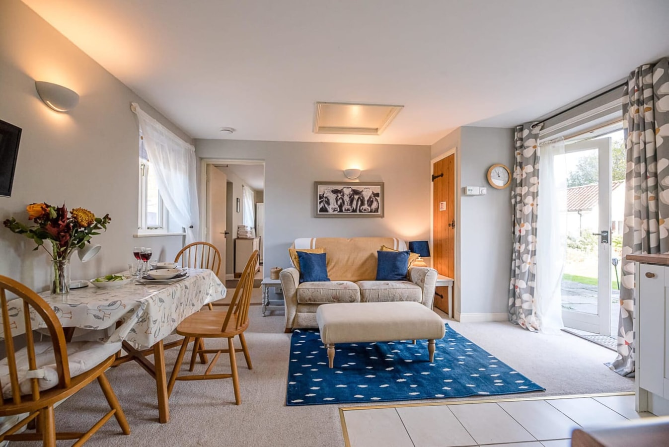 Located within the delightful rural setting of Boundary Farm in Saxtead, the Cartlodge is a superb one bedroom holiday home, perfect for couples of all ages looking to enjoy a countryside retreat. The property is set in around six acres of idyllic gardens, woodland and meadows and offers a fully equipped, open-plan kitchen, living and dining area with views over the countryside on one side and the rear garden on the other.